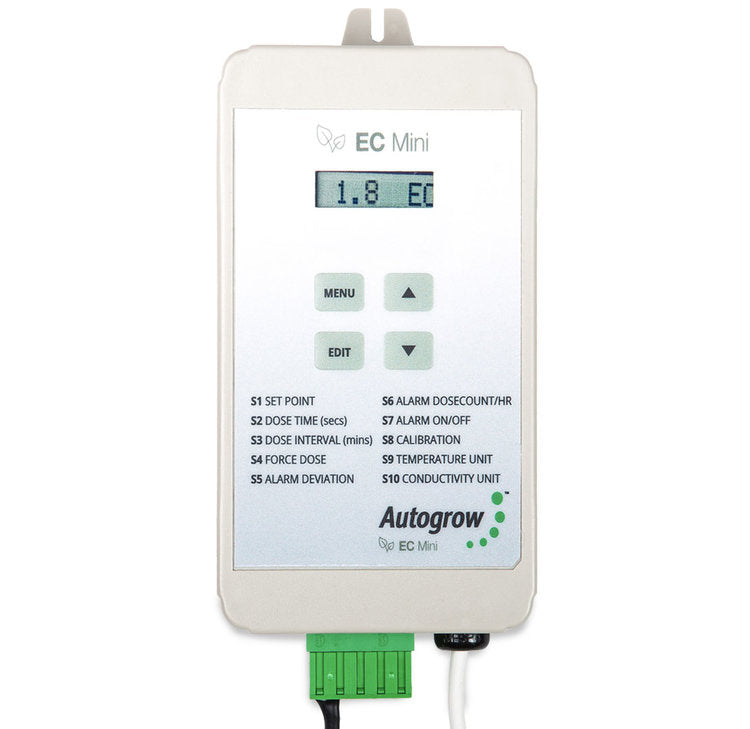This latest monitor/controller has built upon a pedigree of simplicity and innovative features. The EC Mini may be used as a mains powered monitor or, by adding two solenoid valves or pumps, it becomes a fully functional dosing system, managing fluctuations in your EC. EC fluctuations in your reservoir are not only time consuming to correct but can have negative effects on your crop performance.